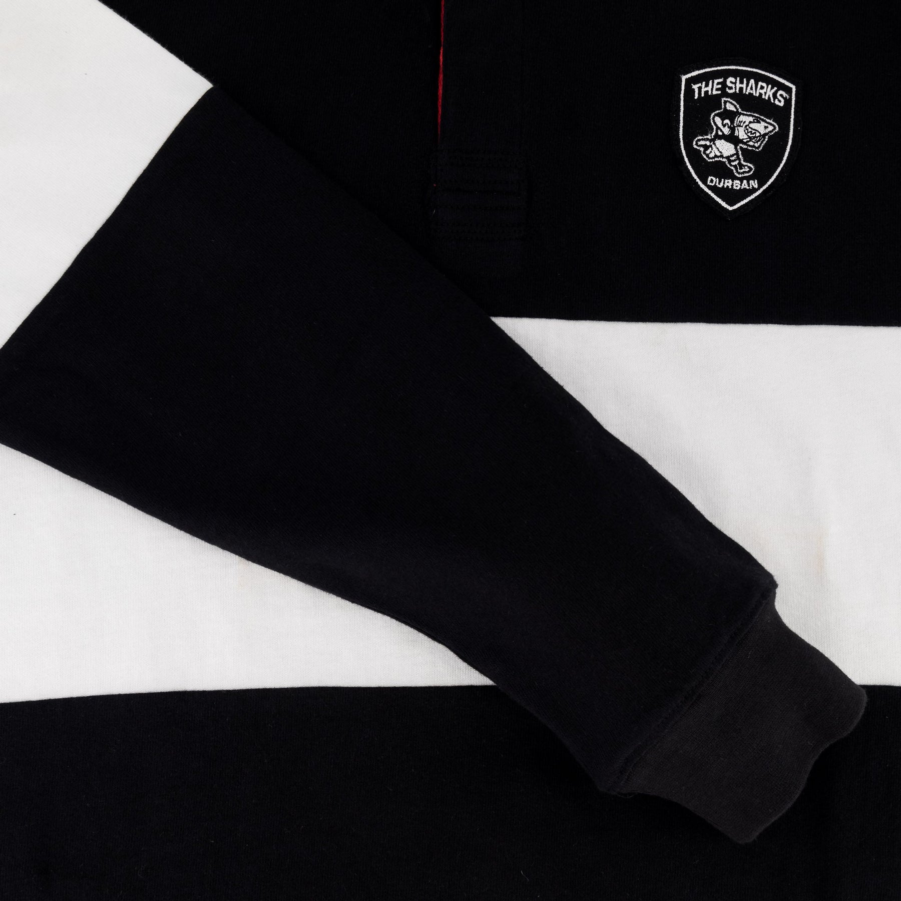 Sharks Rugby Fan Long Sleeve Polo Jersey - Black & White Vintage Style