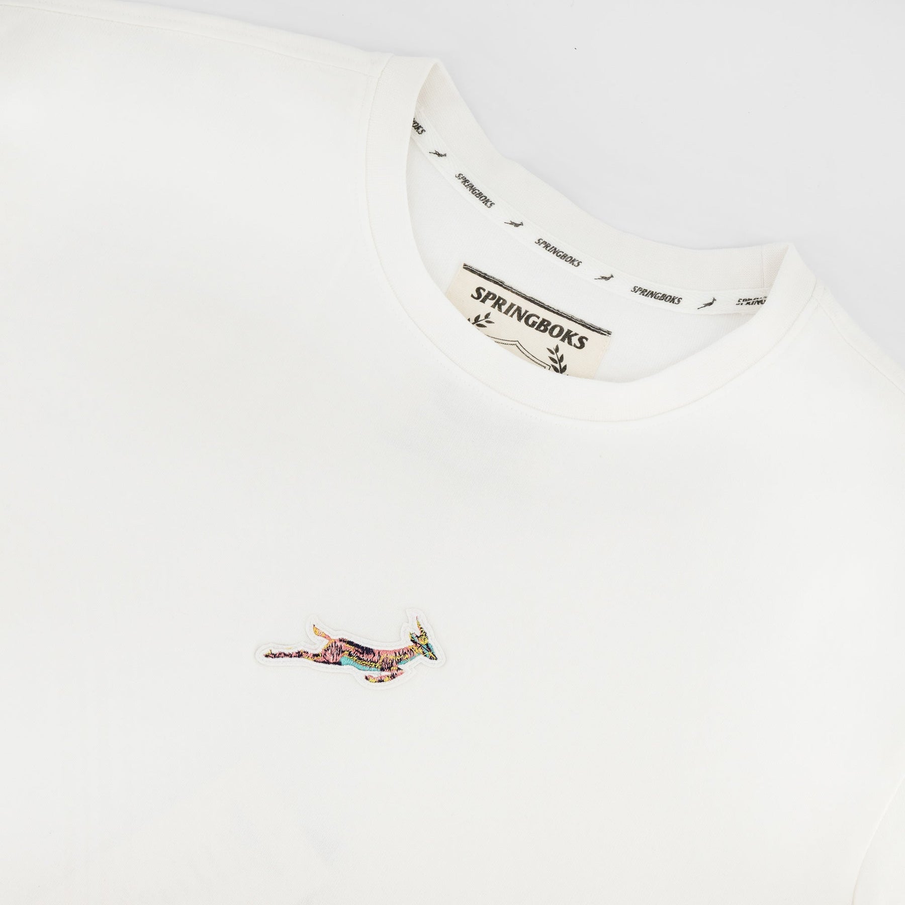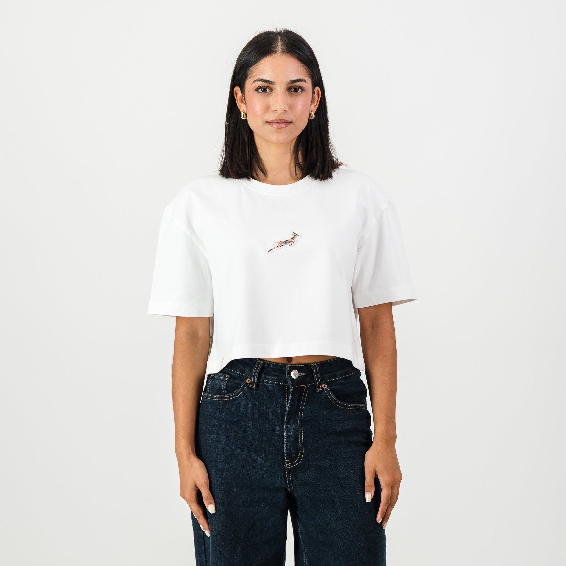 Springboks Ladies Boxy Crew Tee: White Cropped Cotton Rugby Fan Top