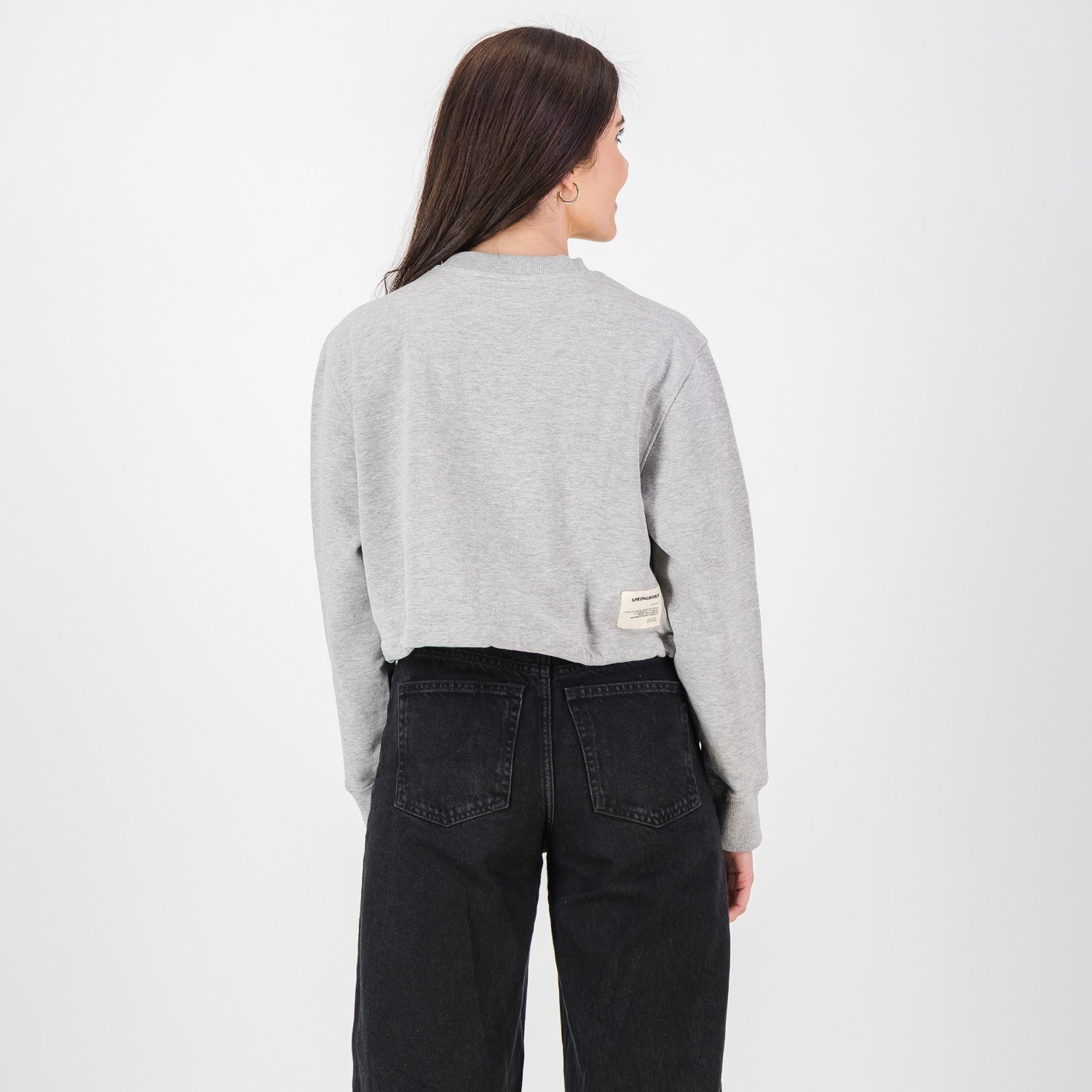 Springboks Ladies Heavyweight Cotton Cropped Crewneck Sweatshirt Light Grey Melange