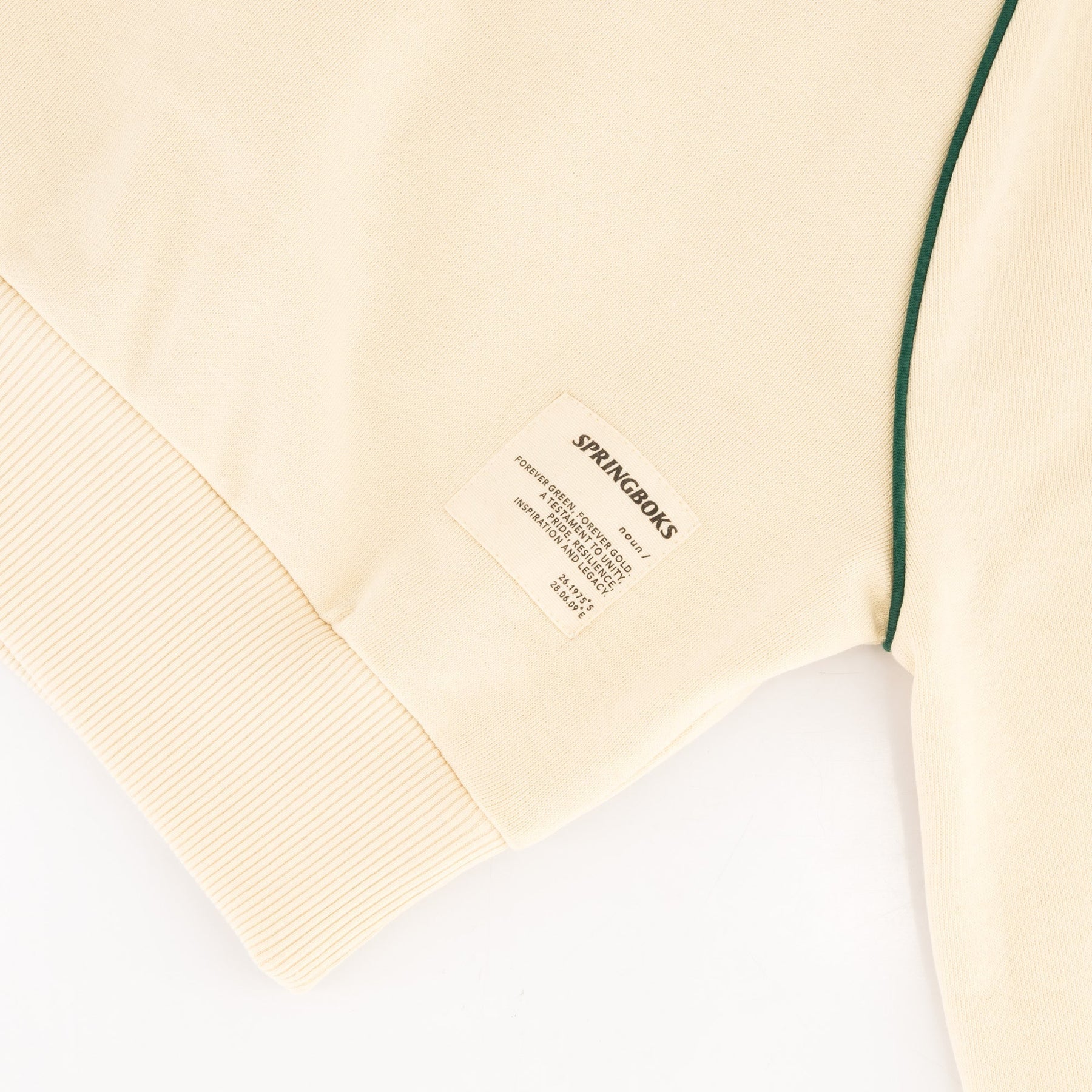 Unleash your inner fan with the super cozy Springboks Ladies Piped Zip Through Sweat, crafted from luxurious heavyweight French Terry. This ivory dream features playful OS Green piping on the raglan sleeves, adding a vibrant pop to your sporty look. Flaunt your pride with the beautifully embroidered Springbok emblem and enjoy the perfect fit thanks to the elasticated hem and cuffs. It's the ultimate blend of comfort, heritage, and chic style for your everyday adventures!