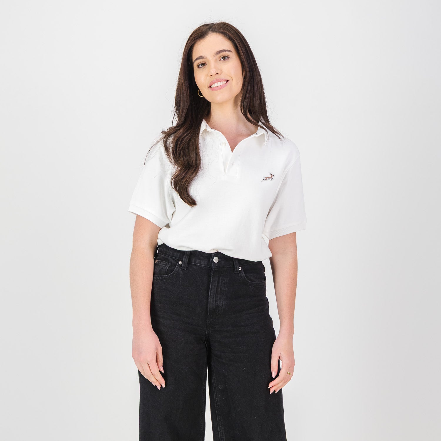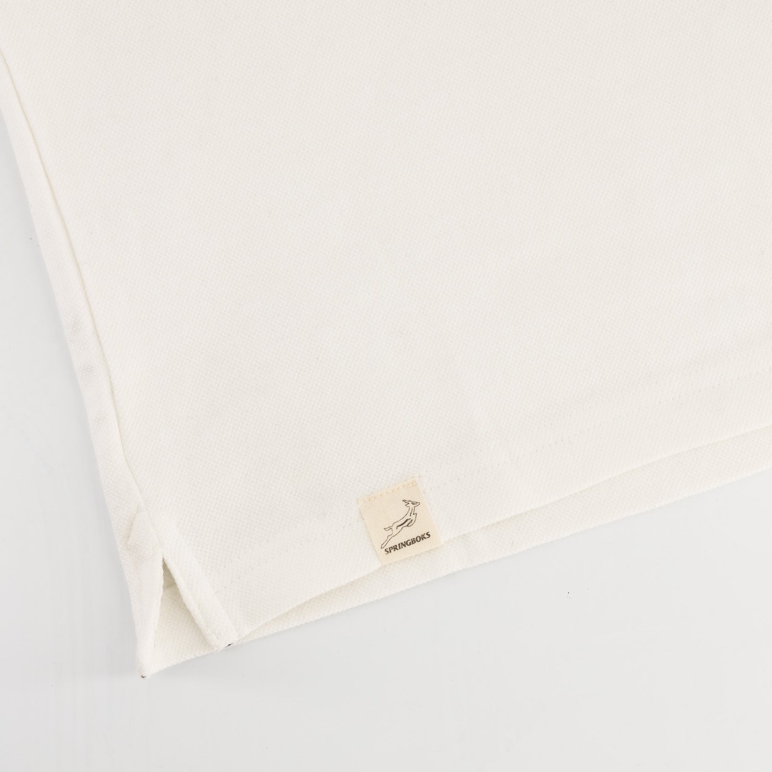 Sport your Springboks pride with this snazzy white polo, a true classic with a playful twist. Crafted from heavyweight pique interlock cotton, it feels fantastic and holds its shape beautifully. Adorned with custom-branded buttons and a charming embroidered badge, this shirt blends timeless style with a touch of national spirit. It's the perfect way to show off your love for the game in comfortable, understated fashion.