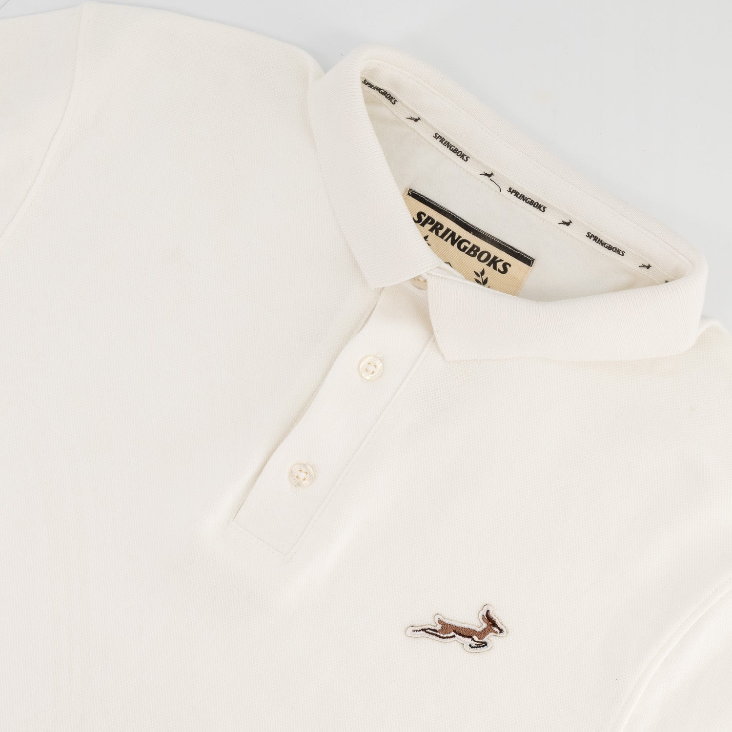 Springboks Men's Classic White Polo Shirt - Embroidered Badge, Comfortable Pique Fabric