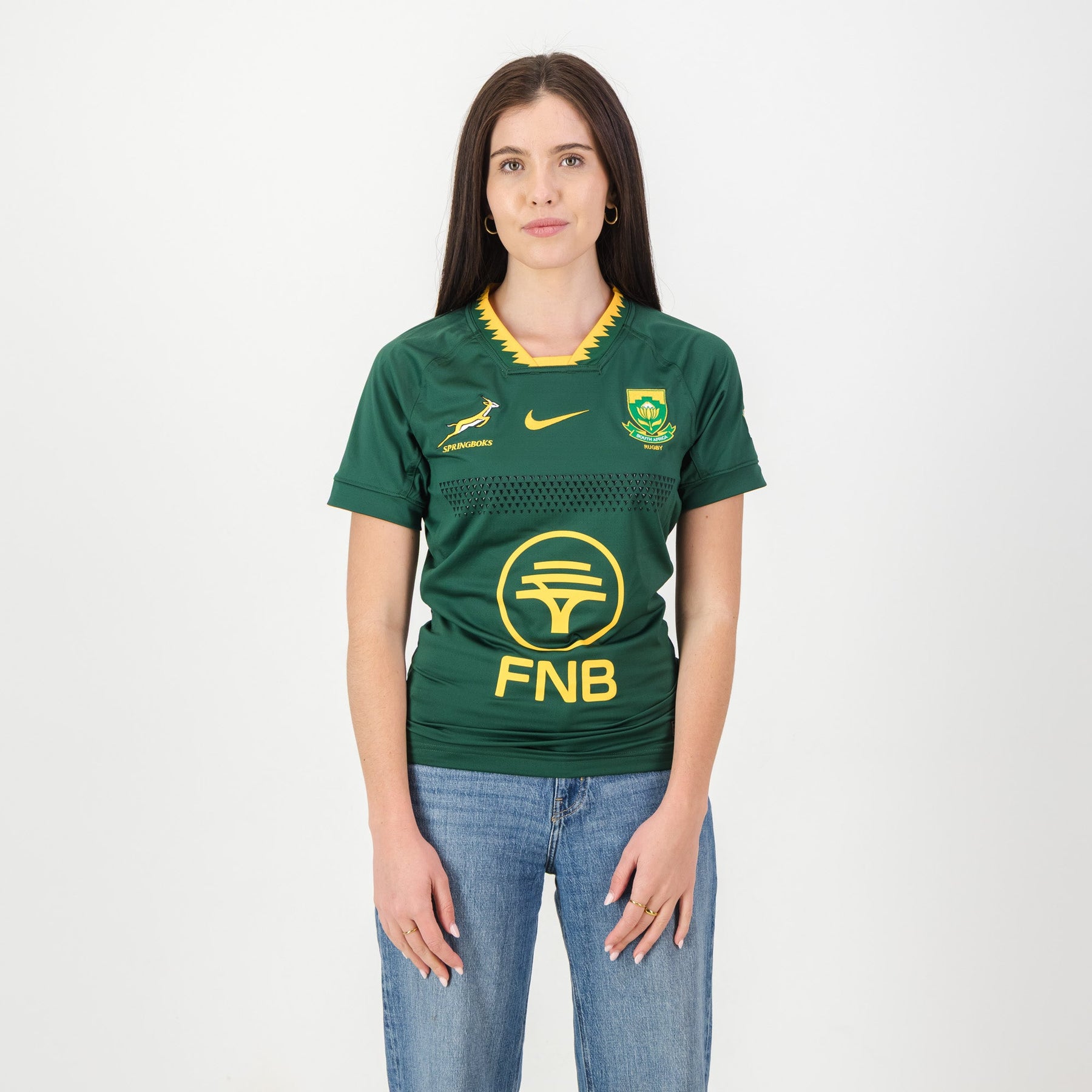 Unleash your inner rugby legend with this Springboks Men's Nike Match Replica Jersey! Designed with the exact materials and construction as the pros' game-day kit, you'll feel like part of the team. Experience ultimate performance and unparalleled comfort, whether you're on the field or cheering from the stands. This jersey delivers authentic style and a winning feel, making every moment a try-scoring celebration!