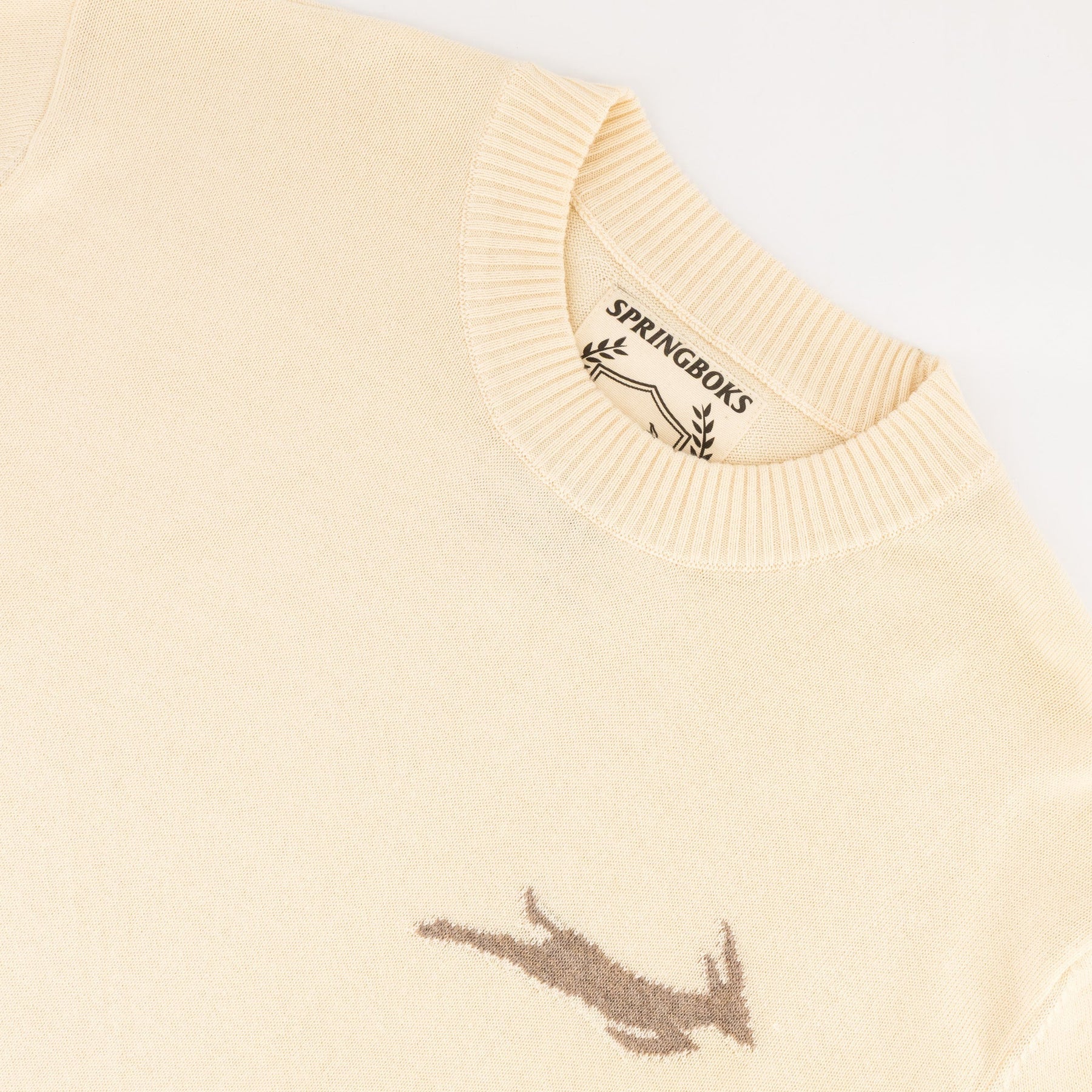 Springboks Rugby Faded Ivory Cotton Crew Neck Knit Sweater