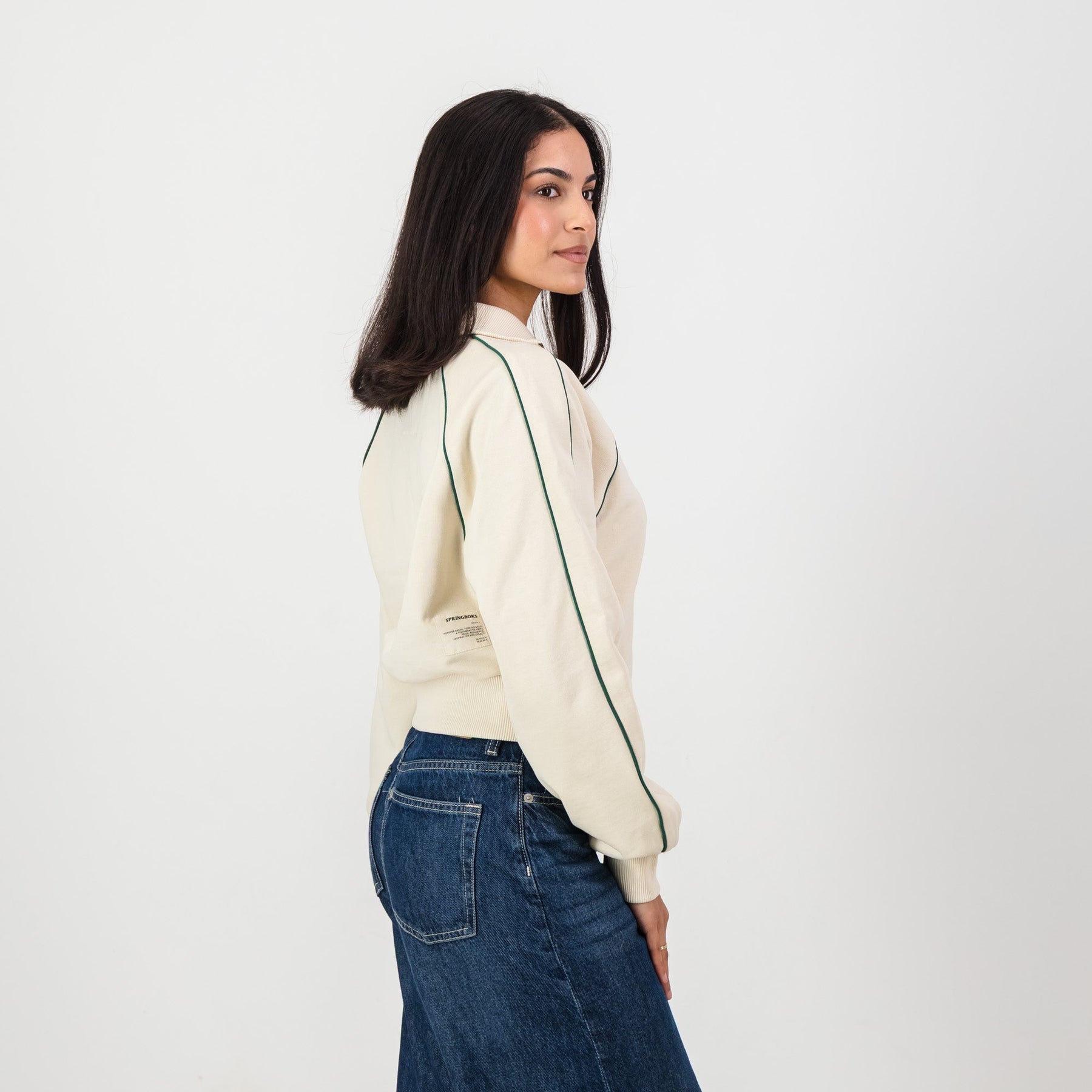 Stylish Springboks Ladies Ivory Piped Quarter Zip Sweatshirt - Heavyweight French Terry